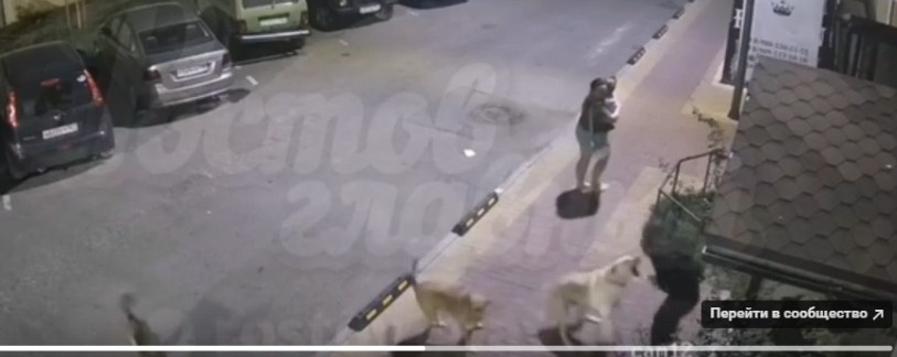 На видео показано, как собаки окружили ростовчанку с маленьким ребёнком, после чего загнали к стене дома девочку-подростка. Один из псов чуть не укусил её за руку.