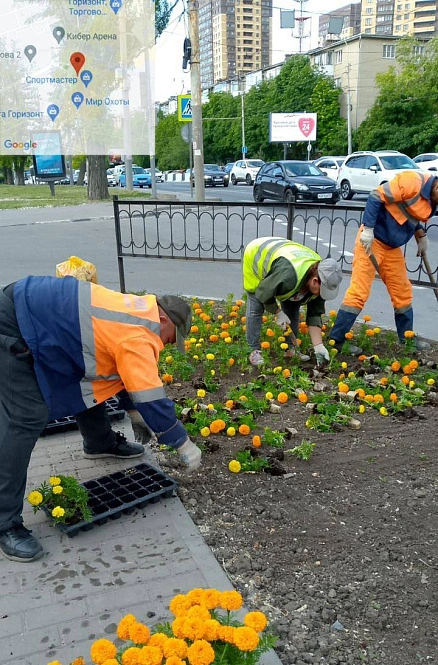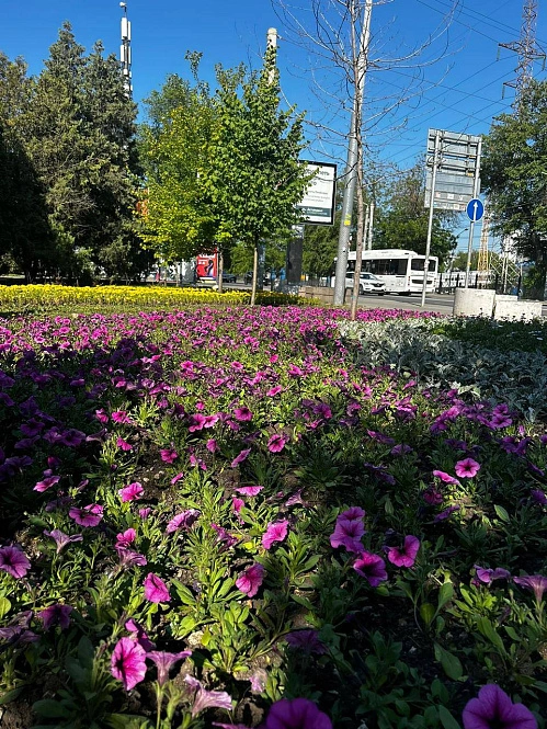 Уже к середине первого месяца лета город украсят около 960 тысяч цветов. Среди них: тагетес, петуния, газания, колеус, львиный зев, циния.