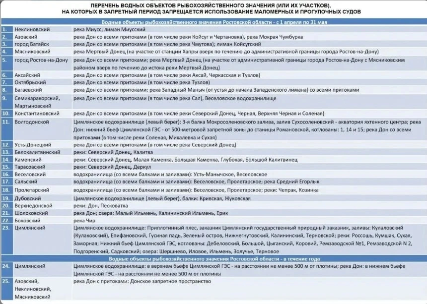 С полным перечнем акваторий, на которые распространяется временный запрет, можно ознакомиться на фото: