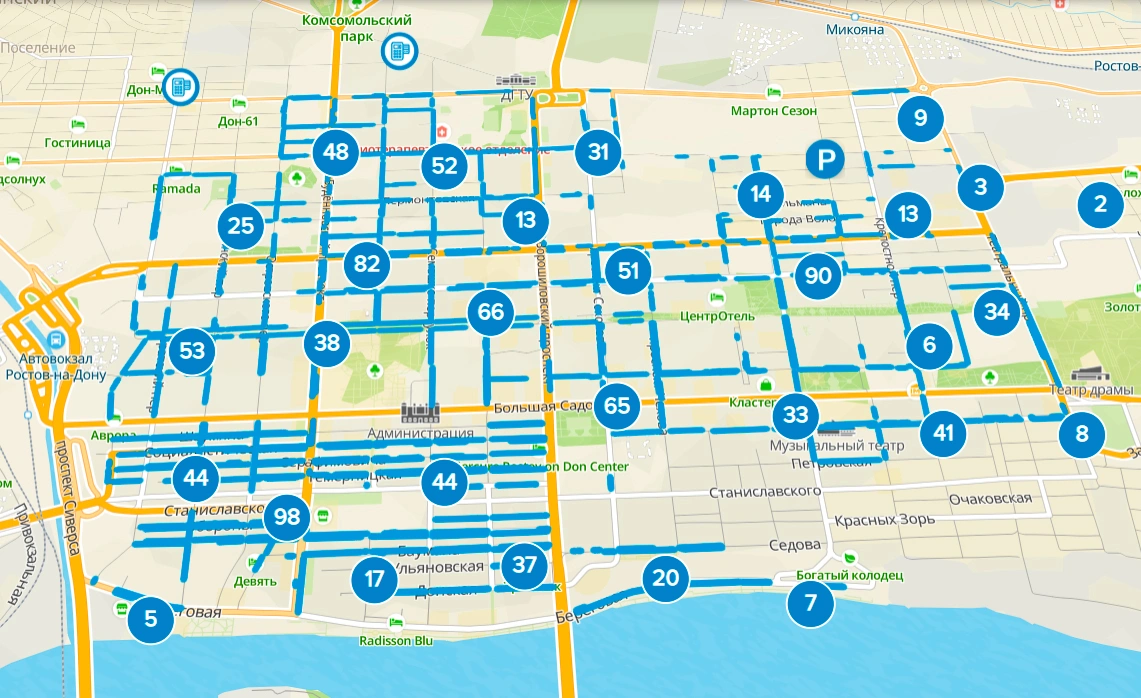 Стоит отметить, что зоны платных парковок пока есть только в Ростове-на-Дону. Согласно порталу «Ростовское парковочное пространство» в настоящее время их количество составляет 988 и рассчитаны они в общей сложности на 7030 мест.