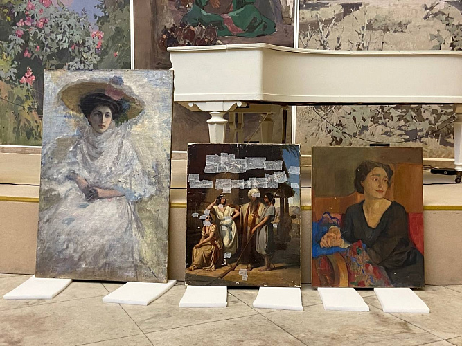 Фото: В Русском музее осмотрели пострадавшие в результате взрыва ракеты шедевры из Таганрога // фото пресс-службы Русского музея