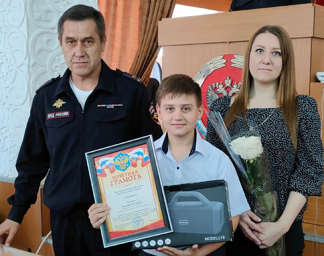 За проявленную смелость заместитель начальника МУ МВД России «Волгодонское» полковник Виталий Бородин вручил юному герою почётную грамоту и ценный подарок. Также он выразил благодарность родителям мальчика за достойное воспитание.