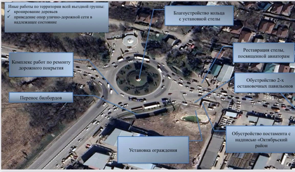 Благоустройство въездной группы на Таганрогской/Малиновского завершат до сентября этого года. На территории установят стелу с надписью «Ростов-на-Дону город воинской славы».