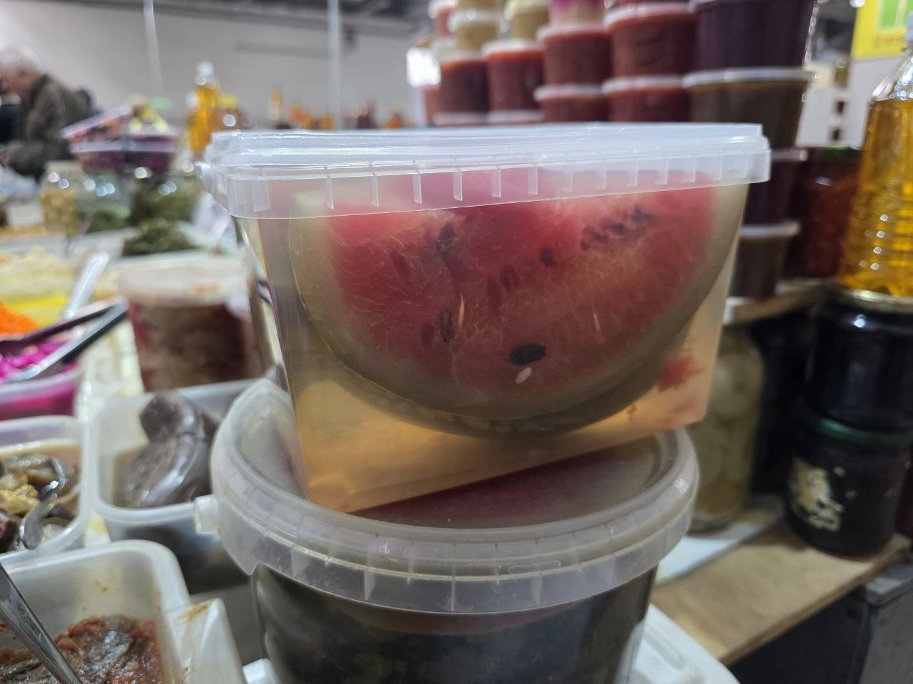 Если времени и сил на засолку арбузов нет, готовый вариант можно найти на Северном рынке в Ростове. Небольшая баночка обойдется в 200 рублей, побольше – 350 рублей.