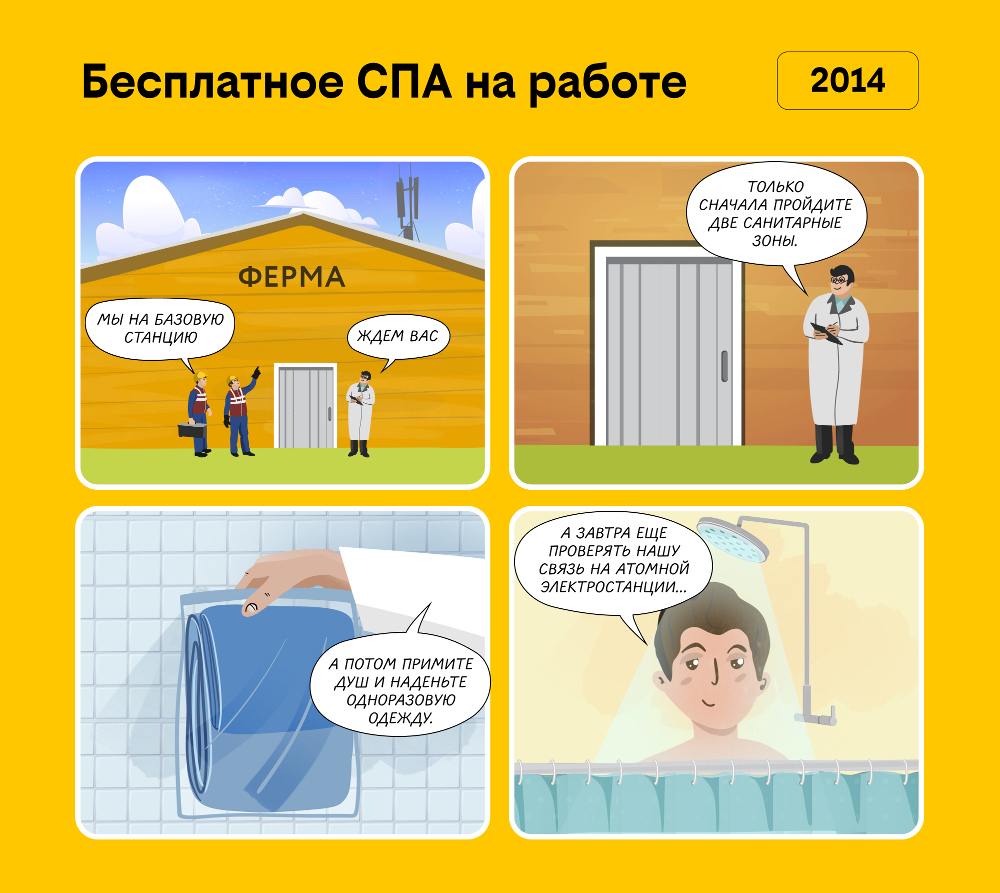 2014 год – наступило время скоростного мобильного интернета. Оператор запускает сеть 4G. Появляется все больше моделей смартфонов и выгодных мобильных тарифов. Также увеличивается интернет-покрытие. Сети строятся не только в крупных городах, но и рядом с небольшими населенными пунктами, и на территориях промышленных комплексов. Порой для обслуживания базовых станций специалистам билайна приходилось каждый день преодолевать «квесты».