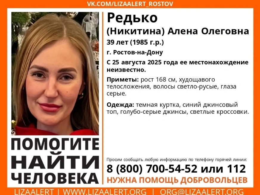 Поиски 39-летней Алены Редько в Ростовской области завершились. Напомним, дончанка пропала 25 августа, когда ехала с бывшем мужем из Аксая в Ростов. Ее тело спустя неделю нашли в лесополосе на левом берегу Дона.