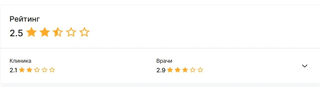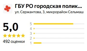 На Яндекс Картах у медучреждения преобладают хорошие отзывы и средняя оценка 5. Чего не скажешь о сайте «Продокторов», где средняя оценка поликлиники – 2,5. Основные жалобы пациентов – сложности при записи к врачам, что наблюдается во многих городских поликлиниках.