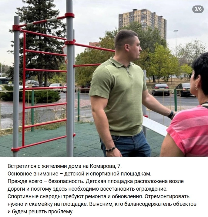 — Убежден, что детей надо объединять в том числе и вокруг темы здорового образа жизни. Поставил себе задачу — в округе №4 Ворошиловского района заменить старые турники и уличные тренажёры на новые. Они должны быть доступны для детей и подростков, — писал Вячеслав Сорокин.