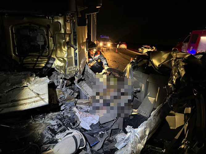 После удара от легковушки осталась груда металла, 21-летний водитель иномарки погиб. Водитель грузовика, по предварительным данным, не пострадал. Обстоятельства трагедии уточняются.