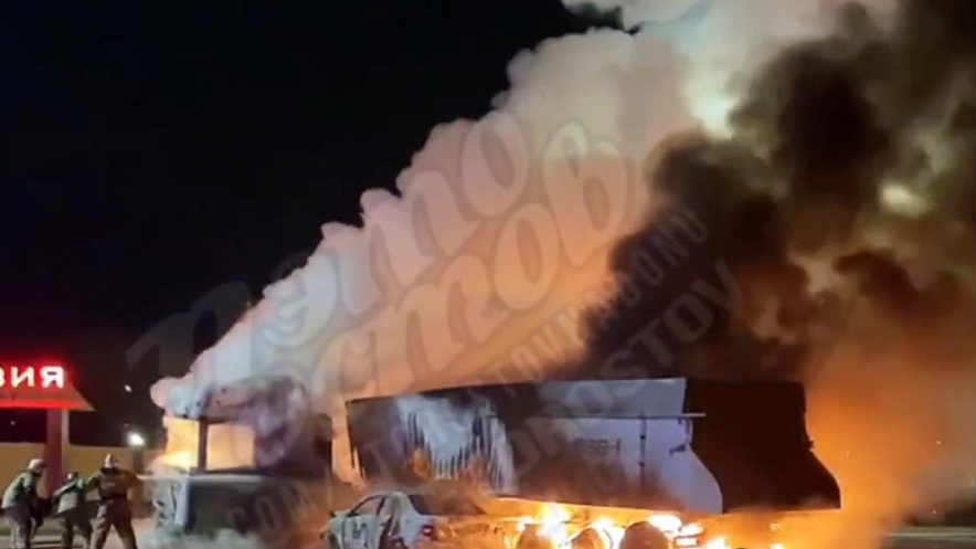 На шоссе под Ростовом после ДТП вспыхнул грузовик и легковушка, есть жертвы