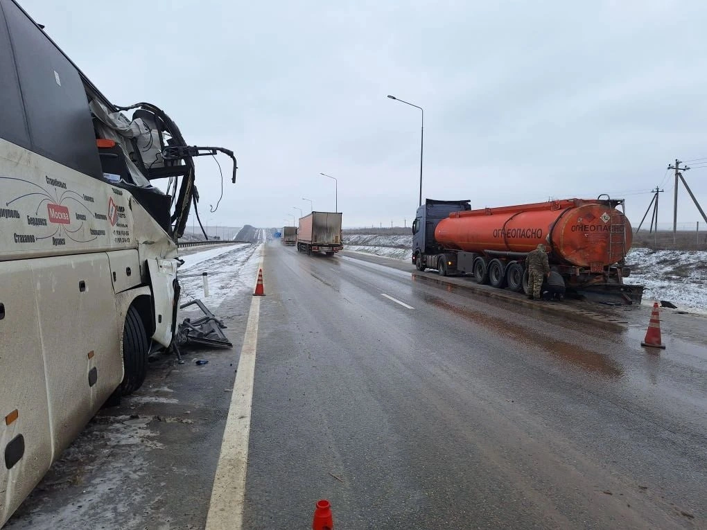 По данным региональной Госавтоинспекции, 39-летний водитель автобуса «Ютонг», двигавшийся по маршруту «Москва — Стаханов», не выбрав безопасную дистанцию, столкнулся с движущимся впереди грузовым автомобилем «Скания» с цистерной.
