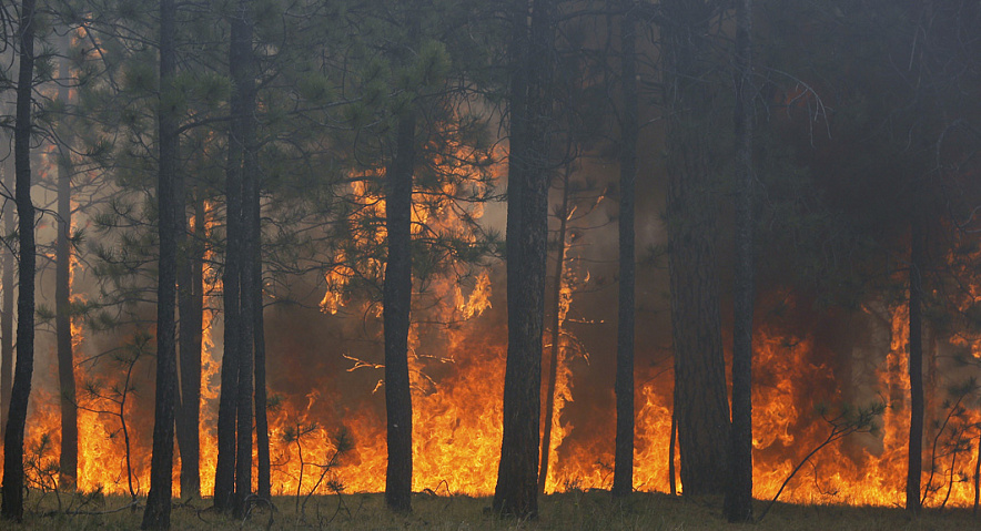 Распространению огня способствует штормовой ветер.