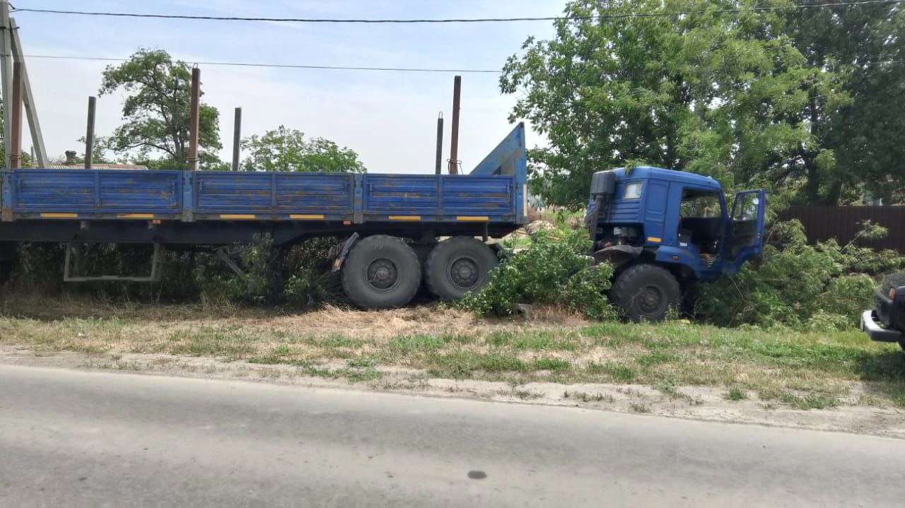 После столкновения с легковушкой КАМАЗ снес газовую трубу в Ростовской области