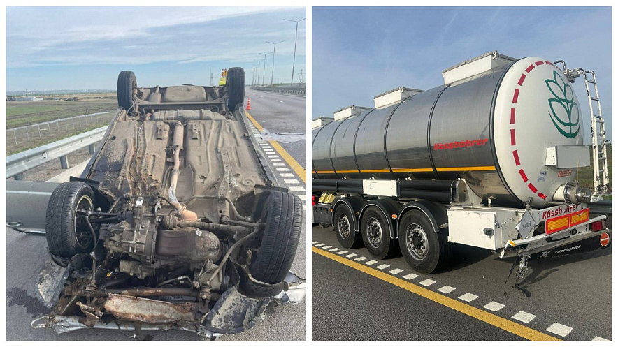Фото: ДТП с "Приорой" и цистерной под Ростовом, кадры ГИБДД