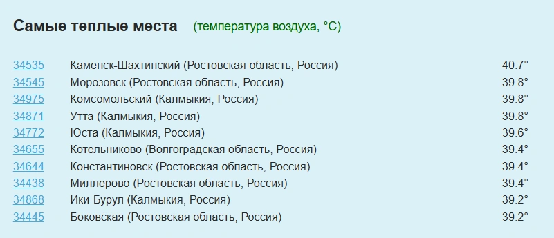 Жарче всего в РФ погода сегодня ощущается в Миллерово. Третье место у Каменска-Шахтинского, десятое - у Морозовска.