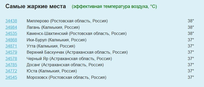 В топе регионов по эффективной температуре (индекс, который учитывает влияние на человека не только температуры воздуха, но и влажность со скоростью верха) у Ростовской области также первое место.
