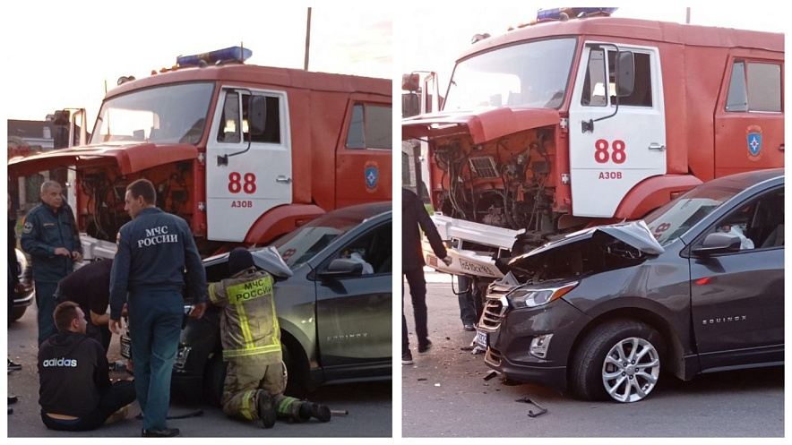 Как рассказали в соцсетях очевидцы, машина пожарных столкнулась на перекрёстке с легковушкой. Спасатели возвращались с вызова.