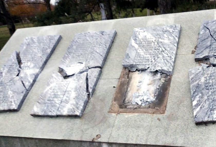В посёлке Весёлом вандал кувалдой разбил мемориальные плиты на памятнике ВОВ