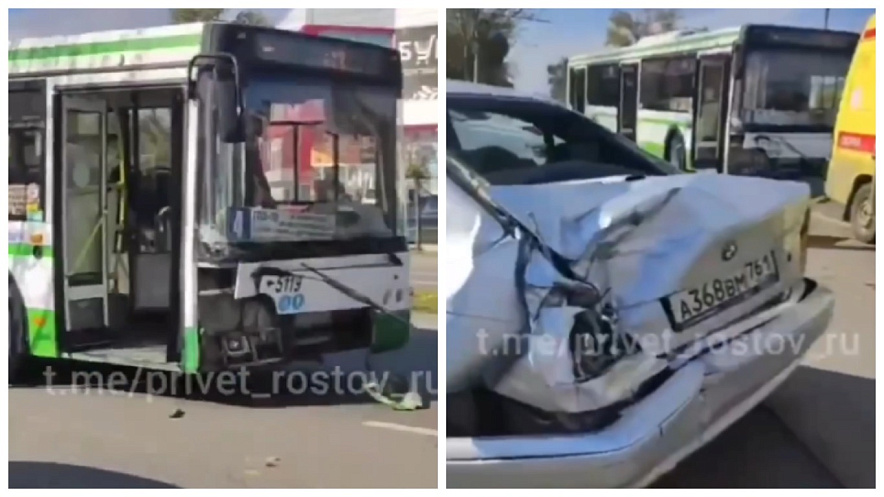 Фото: автобус протаранил иномарку из-за плохого самочувствия водителя, кадры ТГ "Привет Ростов"