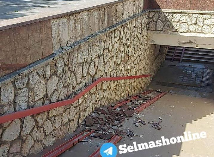 Фото: обрушение плитки в подземном переходе на Шолохова, кадр ТГ Сельмаш онлайн
