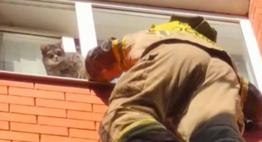 Фото: Пожарные спасли застрявшего в окне кота, кадр МЧС