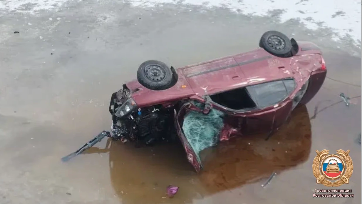 В Ростовской области машина опрокинулась в замерзшую реку – водитель погиб