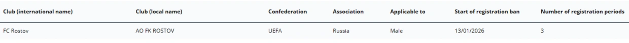 Три трансфертных окна без новичков: «Ростову» временно запретили регистрировать новых игроков