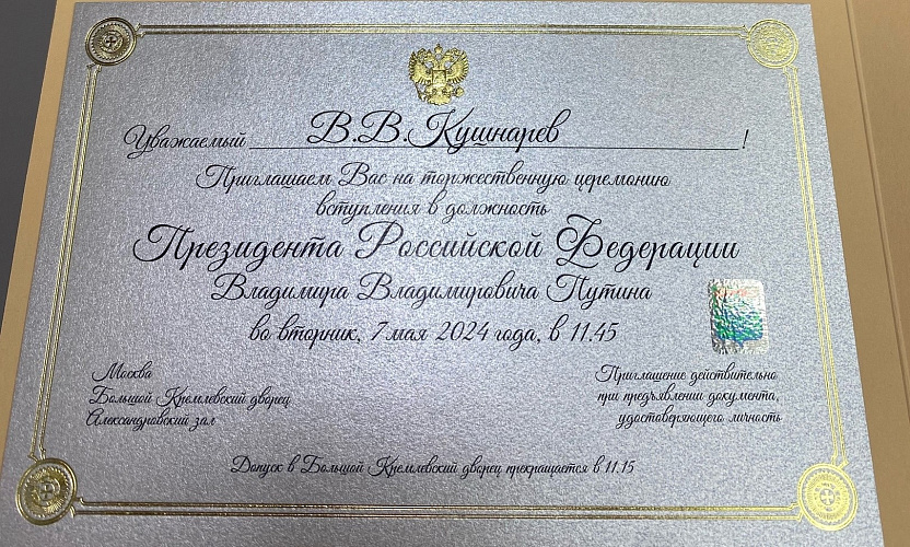 Фото: Приглашение на инаугурацию Путина, кадр из ВК Виталия Кушнарева