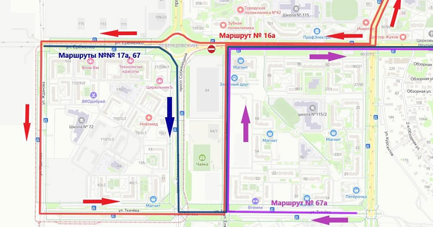 Фото: схема изменения маршрутов автобусов на Левенцовке