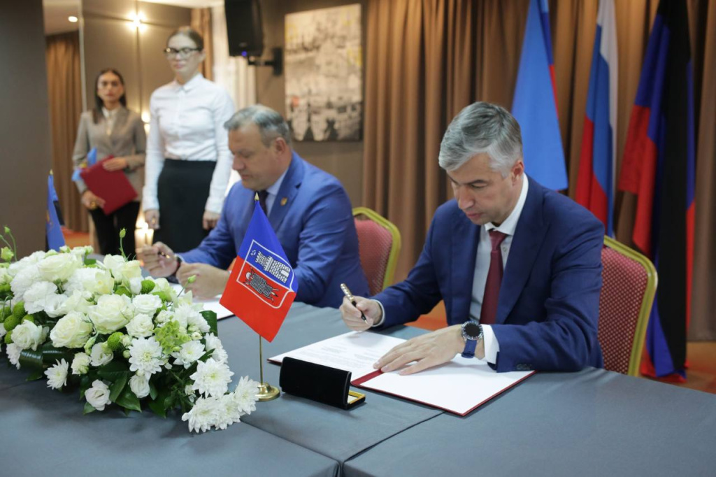 Власти Ростова-на-Дону, Донецка (ДНР) и Луганска подписали соглашение о межмуниципальном сотрудничестве. Подписание прошло накануне Дня города Ростова, куда на празднование прибыли Алексей Кулемзин (глава Донецка) и Манолис Пилавов (глава Луганска).
