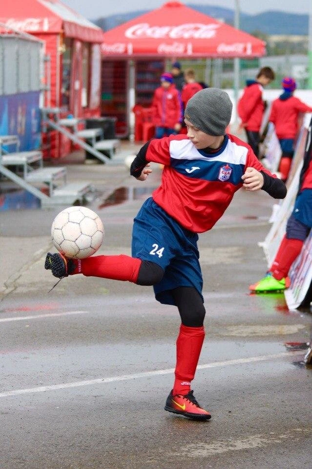 играет в футбол везде и всегда: дома, в школе, во дворе, живет футболом! Любимая команда - Manchester United.