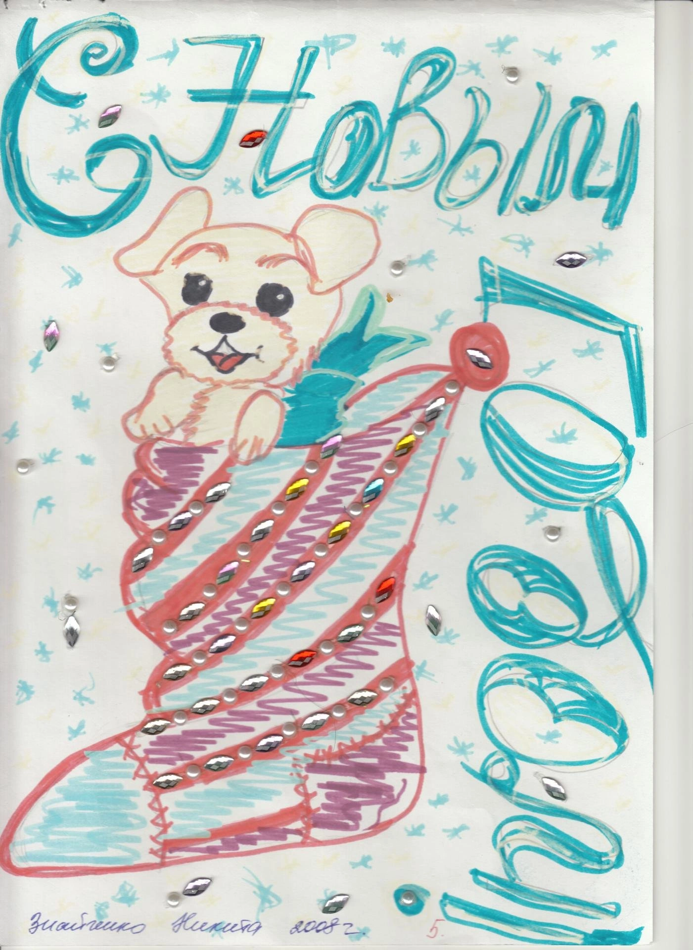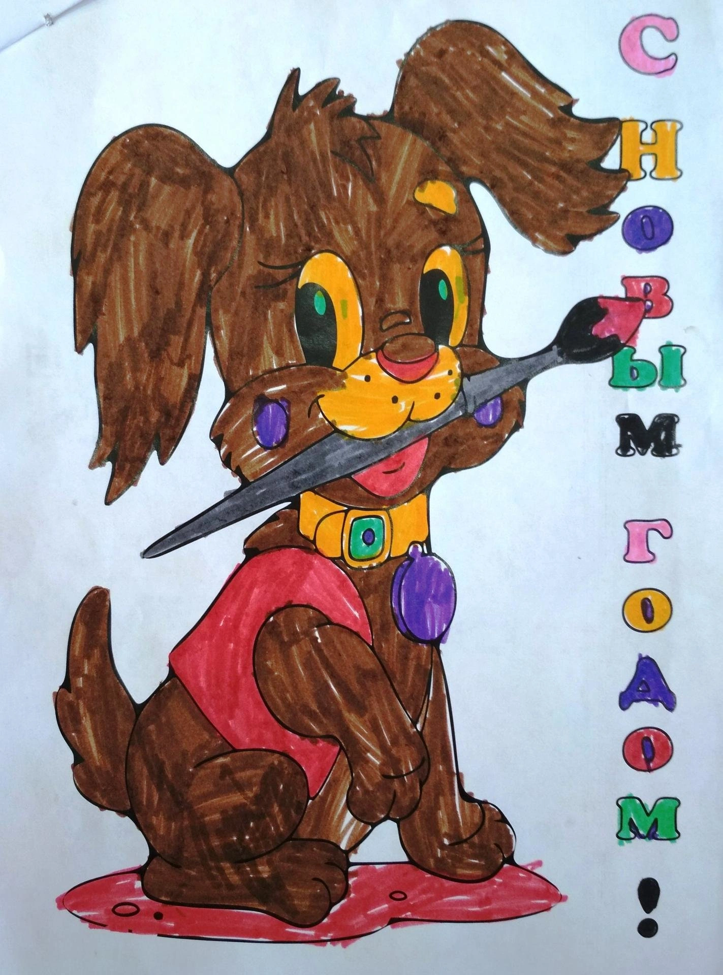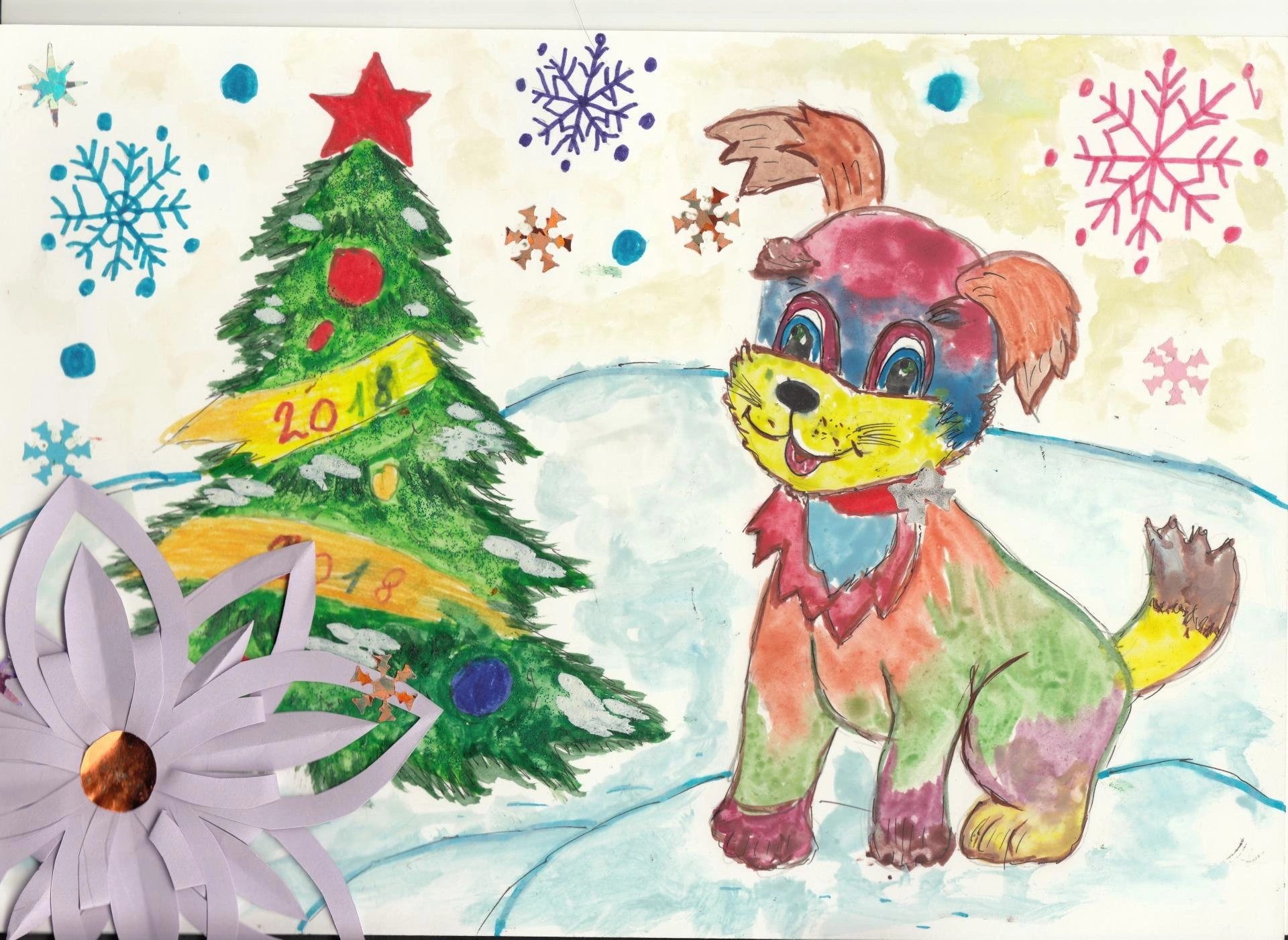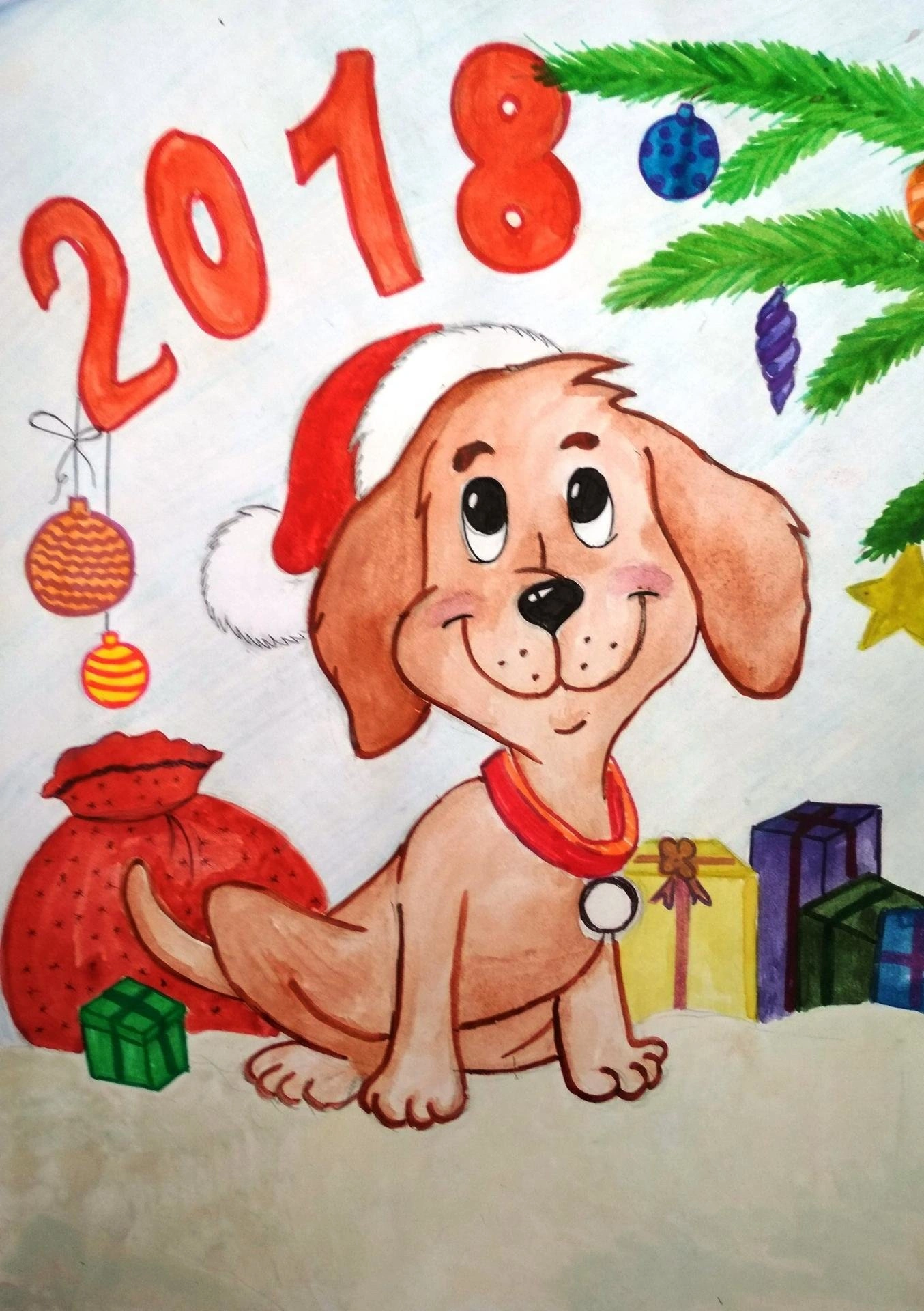 Конкурс творческих работ посвящен Новому году.  Заданием для юных участников конкурса стало сделать картину с будущим символом 2018 года -  Собаки. Оригинальность и креатив приветствовался!  Каждый конкурсант старался отличиться:  кто-то нарисовал, а кто-то даже вышил рисунок!